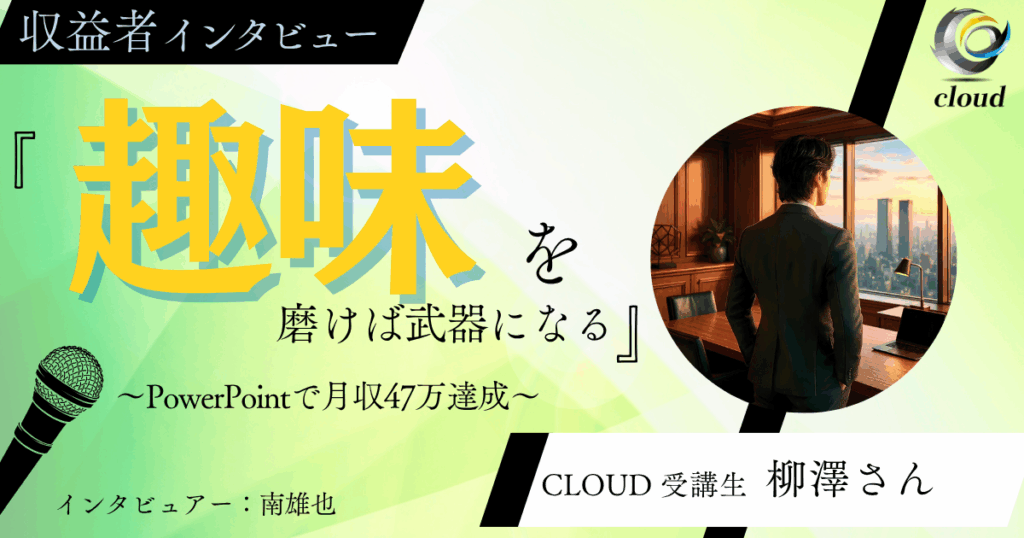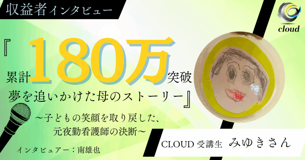 INTERVIEW 【累計182万達成】“家族優先”を叶えた... 皆さん、こんにちは! CLOUD運営の南 Read more 【快挙】フォロワー20人からスタート!パ... 皆さん、こんにちは! CLOUD運営の南 Read more 元教員が「非常識」を選んだ結果——占星術... 皆さん、こんにちは! CLOUD運営の長 Read more 「副業って、夢じゃなかった。」新事業スタ... CLOUD運営の南雄也です。今回もインタ Read more 【累計230万円】教員を辞めて見つけた、... 皆さん、こんにちは! CLOUD運営の長 Read more 会社員10年からフリーランスへ──挑戦が... CLOUD運営の南雄也です。今回もインタ Read more 1 2 3 … 5 Next »